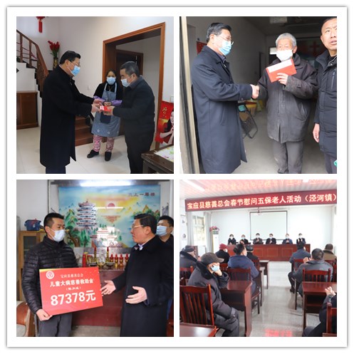 2月1日上午,县人大常委会主任、县慈善总会会长陈金荣、县慈善总会副会长、秘书长吴永生、县慈善总会副会长潘扣春等一行,先后来到安宜镇、泾河镇慰问困难群众和敬老院五保老人。