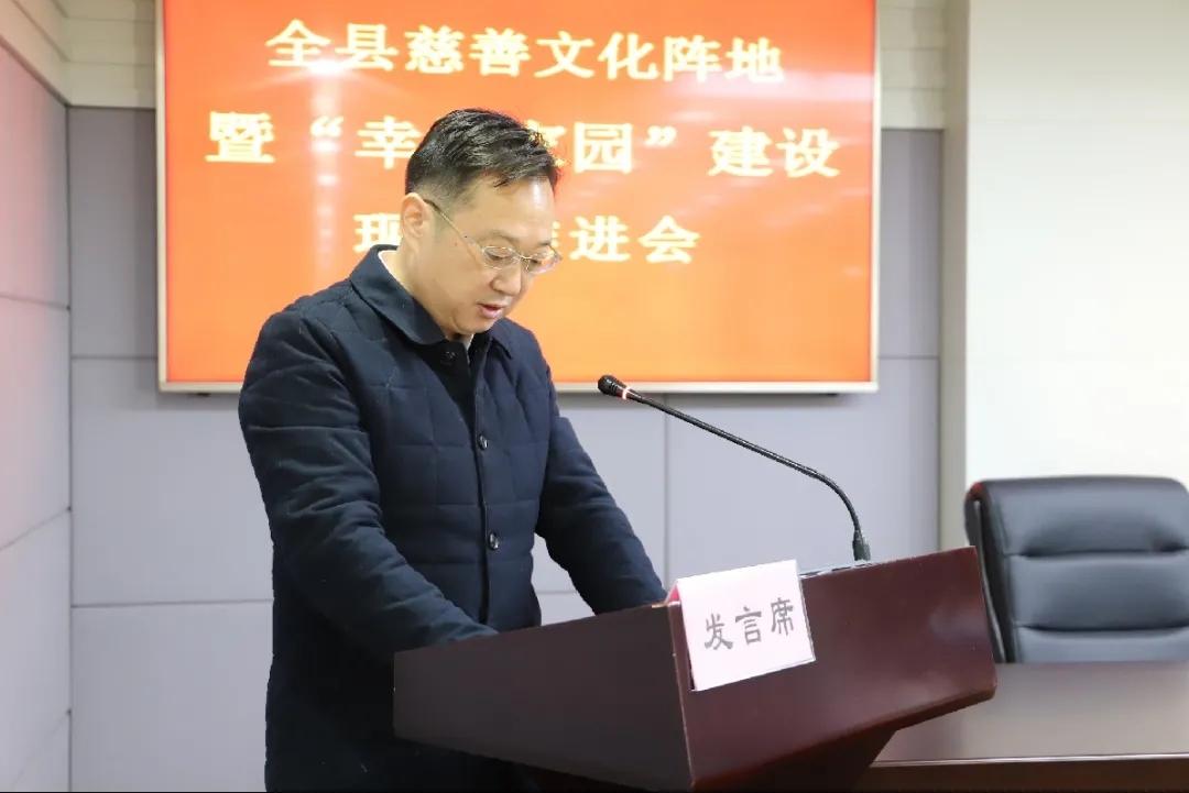 11月9日,县政府召开全县慈善文化阵地暨“幸福家园”建设现场推进会,贯彻落实省、市有关会议精神,着力推进我县慈善文化阵地和“幸福家园”建设。县人大常委会主任、县慈善总会会长陈金荣,副县长金陵,县委宣传部、县教育局、县民政局负责人,县慈善总会驻会副会长、秘书长、副秘书长,各镇(区)政府分管负责人、慈善分会会长、秘书长、镇中心初中校长出席会议。金陵主持会议。