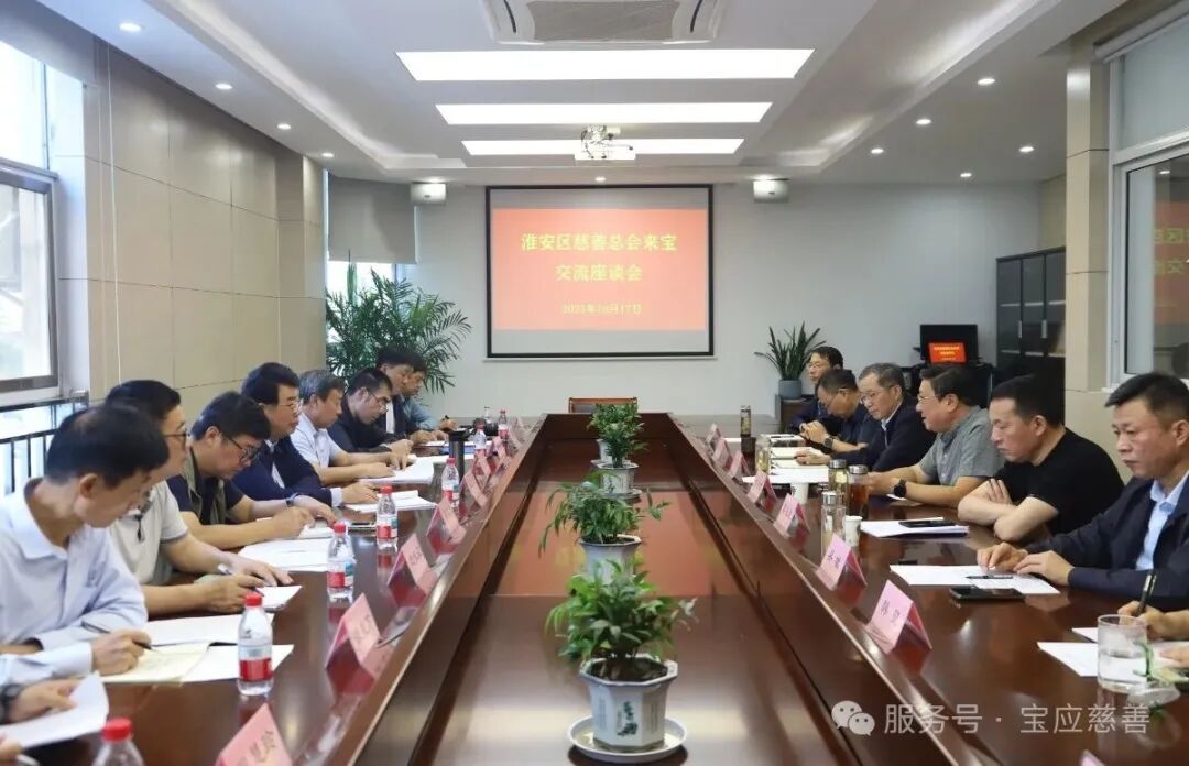 10月17日上午,淮安区慈善总会会长王国权、副会长兼秘书长鲍三贵、副秘书长梁文龙、周淮滨、赵长宝、张学华、谭兆万等一行来宝交流慈善工作。宝应县慈善总会会长陈金荣,党支部书记吴永生,副会长兼秘书长胡文忠,副会长吴斌、强建华等参加座谈交流。