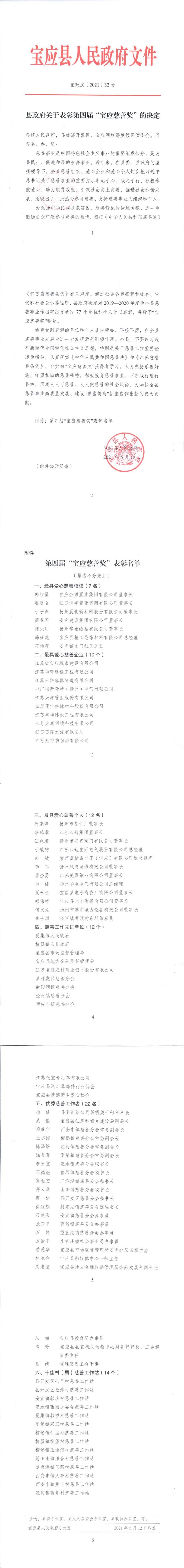 县政府关于表彰第四届“宝应慈善奖”的决定