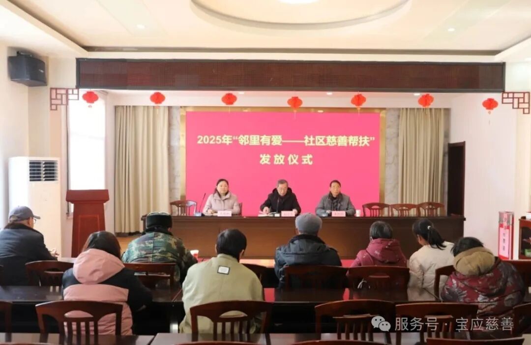 12月30日上午,宝应县慈善总会在安宜镇铁桥社区举行“邻里有爱—社区慈善帮扶”项目资金集中发放仪式。县慈善总会副会长兼秘书长胡文忠、副秘书长衡相贵,铁桥社区党委书记沈彩虹及困难户代表参加活动。